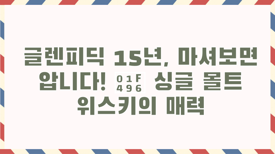 싱글 몰트 위스키의 세계, 한 번 발을 들이면 헤어 나오기 힘들다죠? 그중에서도 많은 이들의 사랑을 받는 글렌피딕 15년은 그 매력적인 맛과 향으로 입문자부터 애호가까지 사로잡는 술입니다. 오늘은 왜 글렌피딕 15년이 특별한지, 그리고 어떻게 즐겨야 그 풍미를 제대로 느낄 수 있는지 함께 알아보겠습니다. 글렌피딕 15년, 왜 특별할까요?글렌피딕 15년은 단순한 위스키가 아닙니다. 스코틀랜드 스페이사이드 지역의 글렌피딕 증류소에서 탄생한 이 술은, 특별한 숙성 방식과 글렌피딕 가문의 장인 정신이 깃들어 있습니다. 솔레라 시스템, 맛의 비결?글렌피딕 15년을 이야기할 때 빼놓을 수 없는 것이 바로 솔레라 시스템입니다. 셰리 와인 숙성에서 유래된 이 독특한 방식은, 서로 다른 오크통에서 숙성된 원액들을 혼합하..